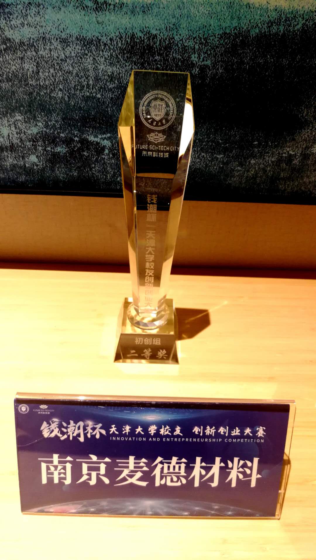 天津大學(xué)校友創(chuàng)新創(chuàng)業(yè)“錢潮杯”大賽中麥德材料獲得二等獎(jiǎng)